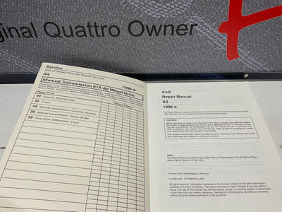 1996-99 A4 Manual Transmission 01A Quattro Repair Manual W42014195104A